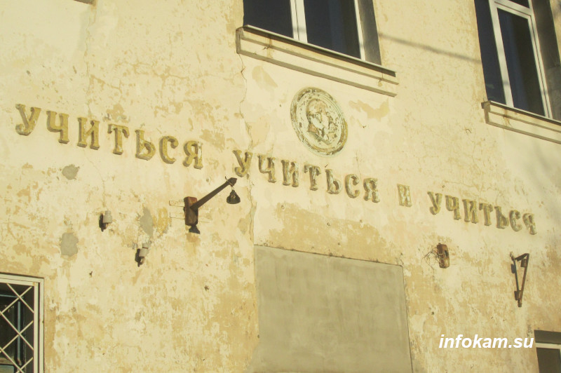 Если вы посмотрите на фотографии, то увидите фасад старой школы, на фронтоне которого был установлен барельеф Ленина и его знаменитый лозунг «Учиться, учиться и учиться!». Сегодня эту часть практический не замечают — у здания создан новый парадный вход. Однако именно этот уголок хранит историю первых десятилетий школы-новостройки…