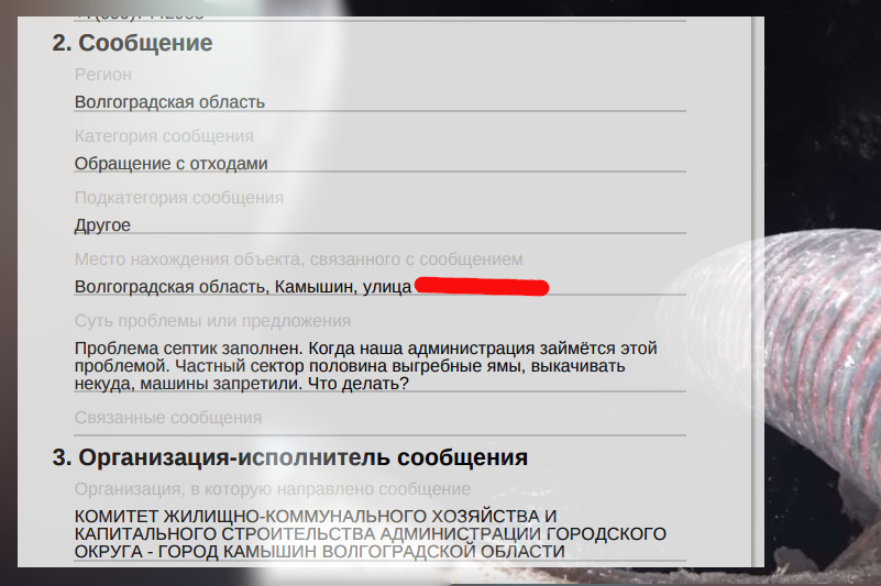 «Ваше обращение, поступившее в Администрацию городского округа — город Камышин из Единого портала государственных услуг по поручению руководства рассмотрено Комитетом жилищно-коммунального хозяйства и капитального строительства. Сообщаем Вам, что жидкие бытовые отходы (далее по тексту — ЖБО) это отходы, образующиеся в результате жизнедеятельности населения. В их состав входят остатки после приготовления пищи, текущей и генеральной уборок, стоки из нецентрализованной канализации. ЖБО в отсутствие централизованной системы отведения собираются в выгребных ямах и септиках. Обращение с жидкими бытовыми отходами регулируется Федеральным законом «Об отходах производства и потребления» от 24.06.1998 № 89-ФЗ. Ранее услуга вывоза ЖБО входила в перечень коммунальных услуг.
