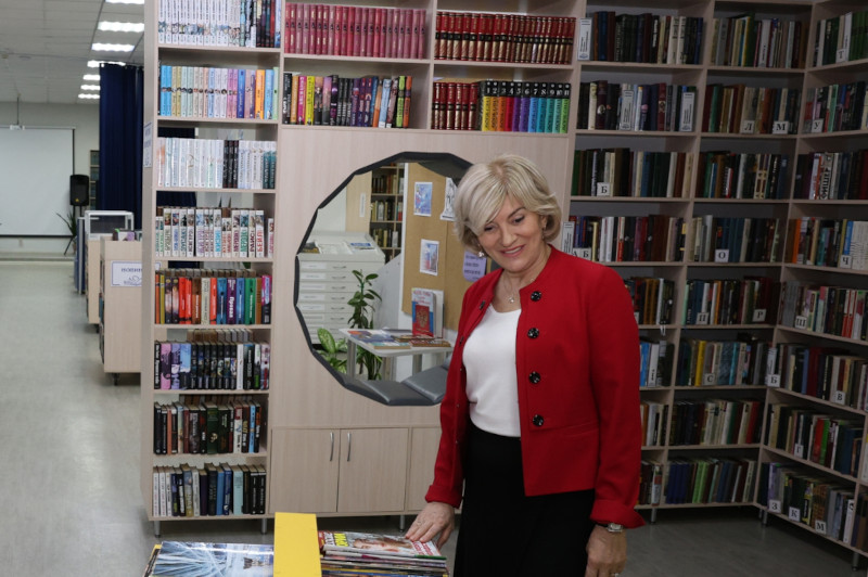 Также в рамках поездки в Камышин посетила библиотеку, которая в 2025 году изменилась благодаря национальному проекту «Семья». Здесь проведен современный ремонт, установлено и активно применяется в работе интерактивное оборудование, новая мебель. Для детей закуплены настольные игры, созданы удобные пространства для проведения мероприятий различного формата.