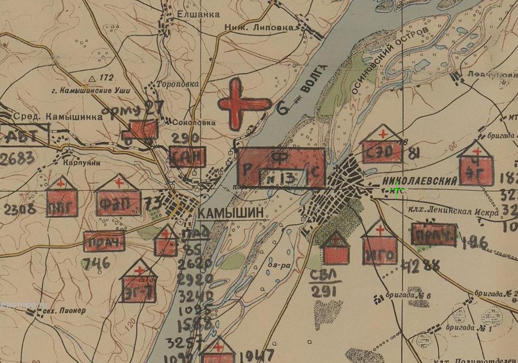 Большие изменения произошли и в районе Камышина. Еще в середине XX века существовали речные острова Галкин, Щербаковский, Дубовской, Осиновский, Шишкин и другие. Они отмечены на карте РККА 1940-х годов.