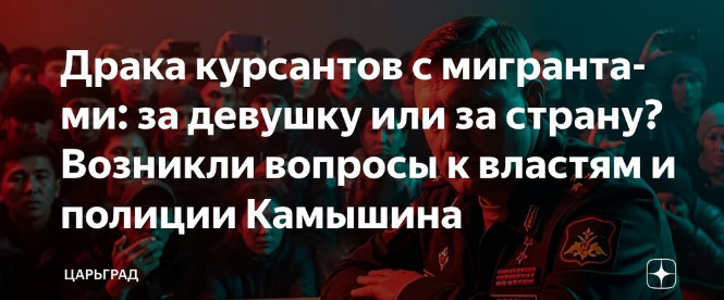 И тут вдруг новость — как гром среди ясного неба: на курсанта, провожавшего девушку, напали мигранты, за что спустя время получили отпор от других курсантов и офицеров. Потом информацию изменили: якобы «наказали обидчиков» в массовой драке бойцы СВО… А причастных курсантов якобы отчислили из училища. При этом сами жители Камышина называли в переписках информацию «дезой». А «деза» массово вливалась в Сеть с комментариями о камышанах, которые сидят сложа руки и служат мигрантам, о руководстве училища, которое поступило не так, и т.д.