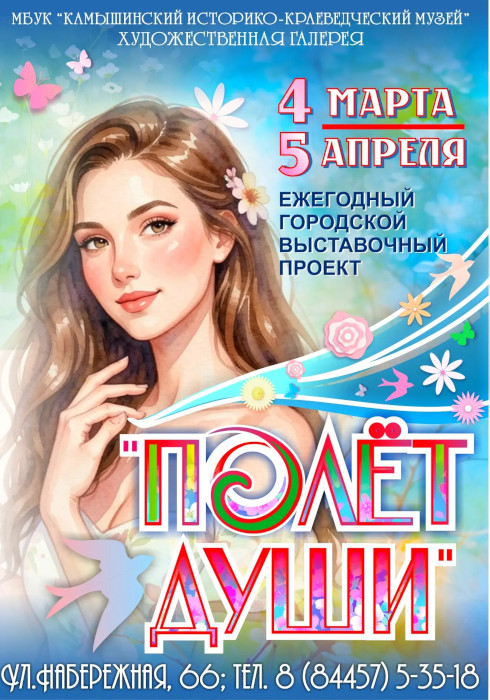 Накануне Международного женского дня Камышинский историко-краеведческий музей преподнёс жителям и гостям нашего города солнечный, проникновенный, душевный подарок — ежегодный выставочный проект «Полёт души». Этой весной в уютном пространстве художественной галереи свои чудесные творческие работы представили порядка 70 мастеров кисти и рукодельниц. Больше 100 художественных произведений и изделий декоративно-прикладного творчества заняли свое место там, где сконцентрировано всё самое доброе, душистое, сердечное и прекрасное, что есть в городе на Волге.