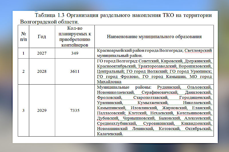 Разные муниципалитеты будут переходить на раздельный сбор мусора в разные сроки. Камышин должен внедрить новую систему в 2028 году, а Камышинский район — годом позже. Уточним, что в приказе Облкомприроды также сказано: в 2025-2028 годах планируется организация сбора ПЭТ-тары путем установки на площадках (местах) накопления ТКО контейнеров-сеток.