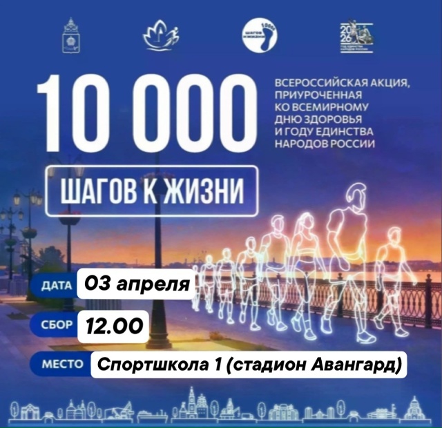 Камышан приглашают принять участие во всероссийской акции «10 000 шагов к жизни»! Старт назначен на 3 апреля (в 12:00) на стадионе «Авангард» (спортивная школы №1, вход с улицы Пролетарской). Организатором мероприятия является городской спорткомитет.