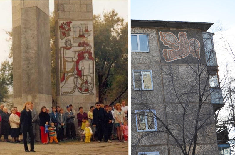 А вот панно, сделанные специально для 300-летия города, которые украшали памятник, некогда стоявший на Набережной перед музеем, увидеть можно только на фотографиях. Спустя 40 лет при демонтаже стелы в 2008 году снять с неё панно художников-монументалистов Мамонова-Чхеидзе даже не задумались.