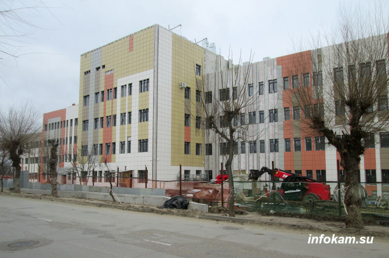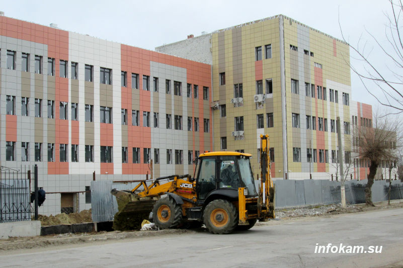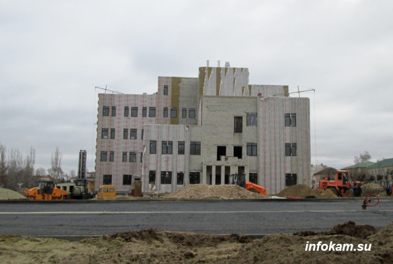 Между тем, камышане видят, что на улице Советской построено новое здание. И это радует. Однако утепление наружных стен и создание вентилируемого фасада при помощи цветных фасадных кассет произведено лишь с центральной части. Внутри огромного здания и снаружи идут работы. Тяжёлая техника планирует грунт и перевозит грузы. На объекте трудятся десятки рабочих, в том числе специалистов в различных сферах… Частично с улицы Советской построено ограждение.