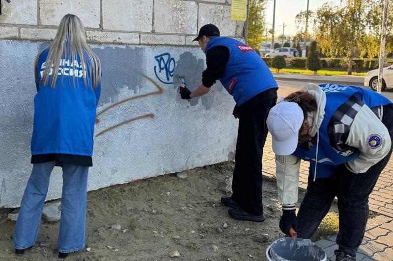 На этот раз молодые добровольцы вышли в район Бухты на улице Пролетарской и в 7 микрорайон, а также уничтожили «наскальную живопись» на домах улицы Нахимова и на площади Павших Борцов.