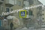 В Камышине сняли на видео, как снежная масса с крыши чудом не обрушилась на мужчину