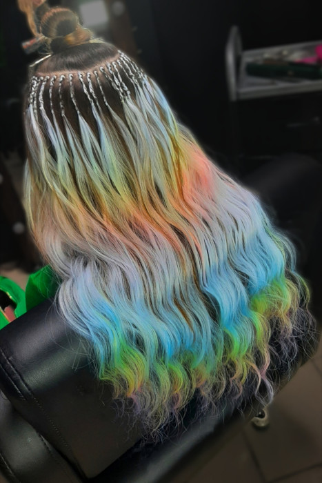 — Длинные волосы — мечта многих девочек, девушек и женщин, но отрастить свои локоны бывает очень сложно, а иногда и вовсе невозможно. Вот тут на помощь прихожу я! На сегодняшний день мой перечень услуг включает в себя безопасное наращивание биопротеиновых волос на микрокосы, цветные пряди, афрокосы и афрокудри. Каждой я готова подобрать прическу, оттенок и структуру волос.