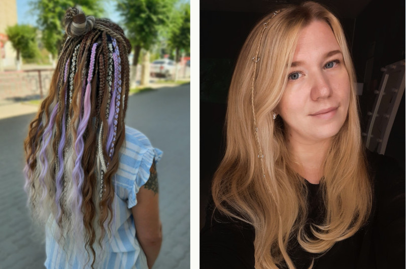 — Выбор пал на работу с биопротеиновыми волосами, поскольку они являются достаточно новым материалом, а способ приплетения волос на маленькие косички (микрокосы) — самым безопасным для своих волос. В таком наращивании мастер не использует кератин, клей, нитки, иголки и раскаленные щипцы, поэтому можно не переживать за собственные пряди.