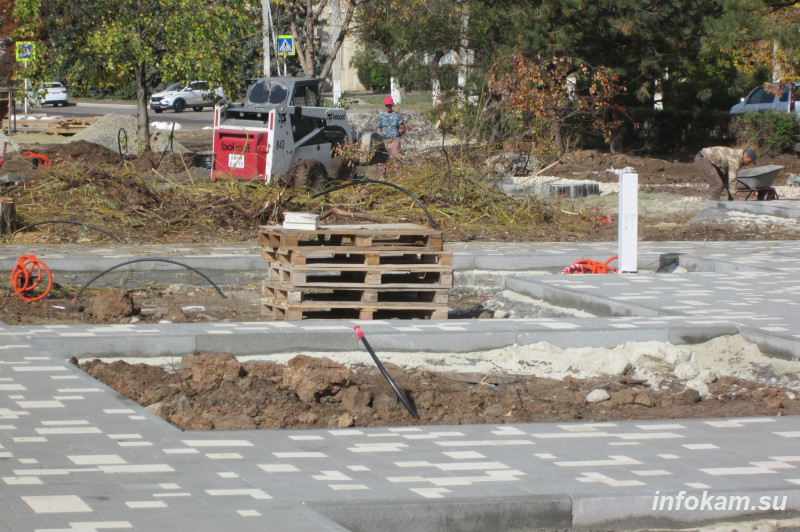 В эти осенние дни в Камышине продолжается благоустройство площади Павших борцов. Из небольшого сквера, прилегающего к улице Октябрьской, бригада рабочих создаёт полноценную зону отдыха.