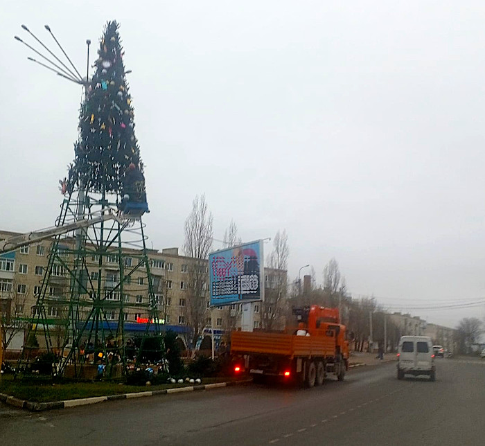 Камышин украсили новогодние елки. Главная из них, на Комсомольской площади, — самая высокая, и, без сомнения, самая нарядная.