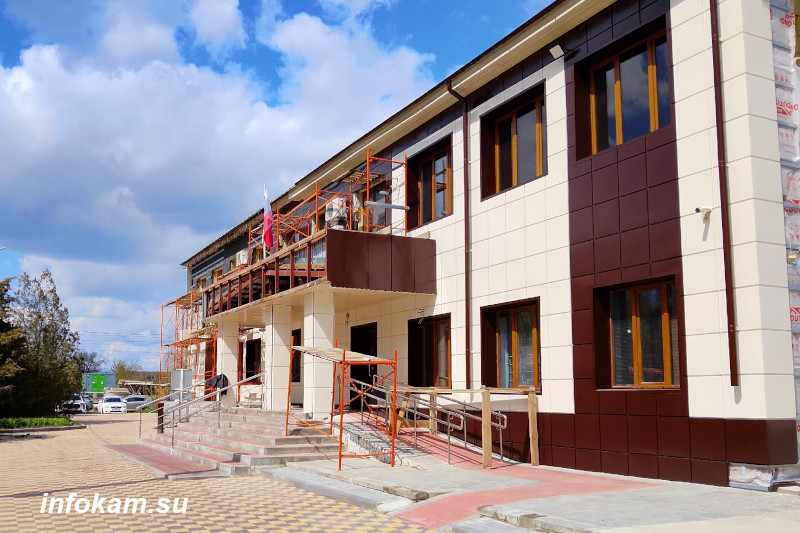 В настоящее время завершены демонтажные работе, подрядчик монтирует навесной вентилируемый фасад здания с устройством теплоизоляционного слоя, попутно устанавливается водосточная система. Согласно контракту, работы необходимо завершить до 20 декабря 2026 года, однако уже сейчас понятно, что сдача объекта состоится гораздо раньше.