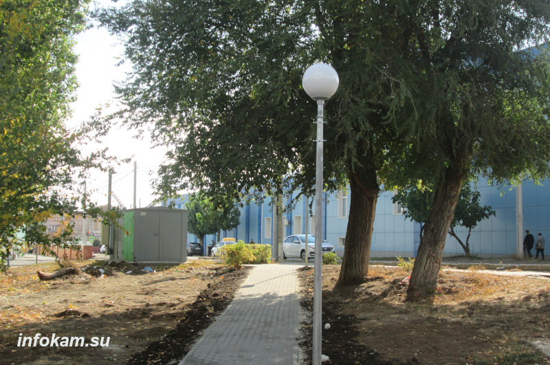 У дорожек сформированы «карманы» для отдыха. Здесь установлены садовые диваны и по две урны. Освещают пешеходные территории светильники-шары. Также покрыта цветной плиткой площадь перед Камышинским городским судом.