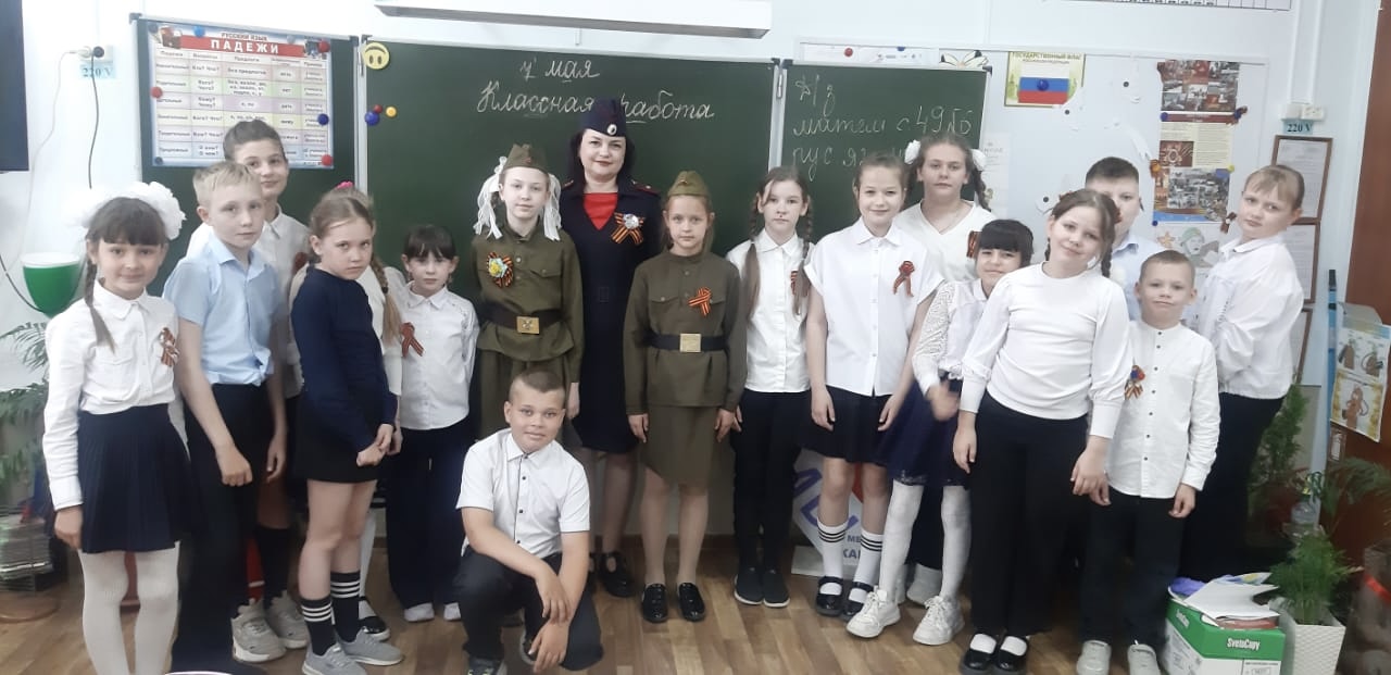Полицейские напомнили ребятам о правильном ношении Георгиевской ленточки и отметили, что, закрепляя ее на груди, мы благодарим ветеранов и участников Великой Отечественной войны.