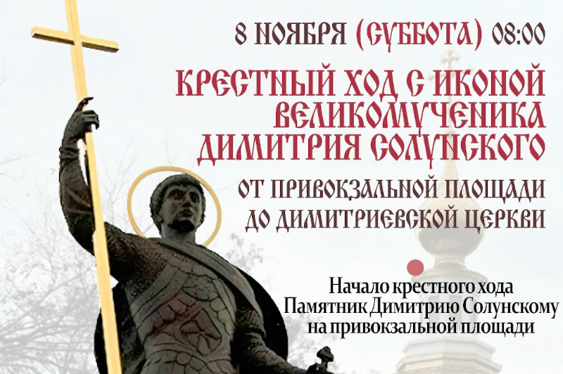 8 ноября православная церковь отмечает память Святого великомученника Димитрия Солунского. В Камышине в этот субботний день состоится Крестный ход с иконой святого Димитрия.