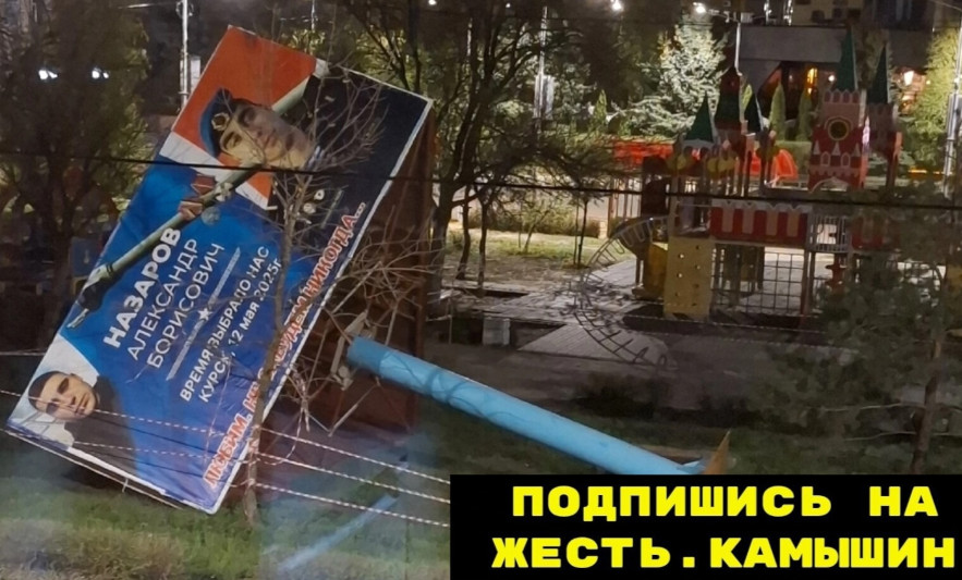 А на улице Ленина ветер «уронил» трёхсторонний рекламный баннер — конструкцию, возвышающуюся на пятиметровую высоту на железной опоре. Слава Богу, никто не пострадал, ведь рядом детский игровой комплекс, могло произойти всякое…