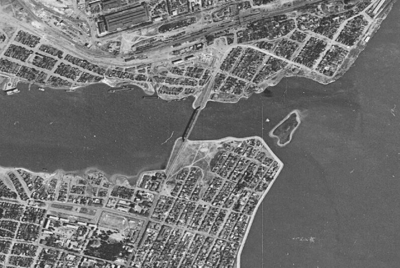 Бородинский мост, островок и река Камышинка (снимок Камышина 1 июня 1965 года)